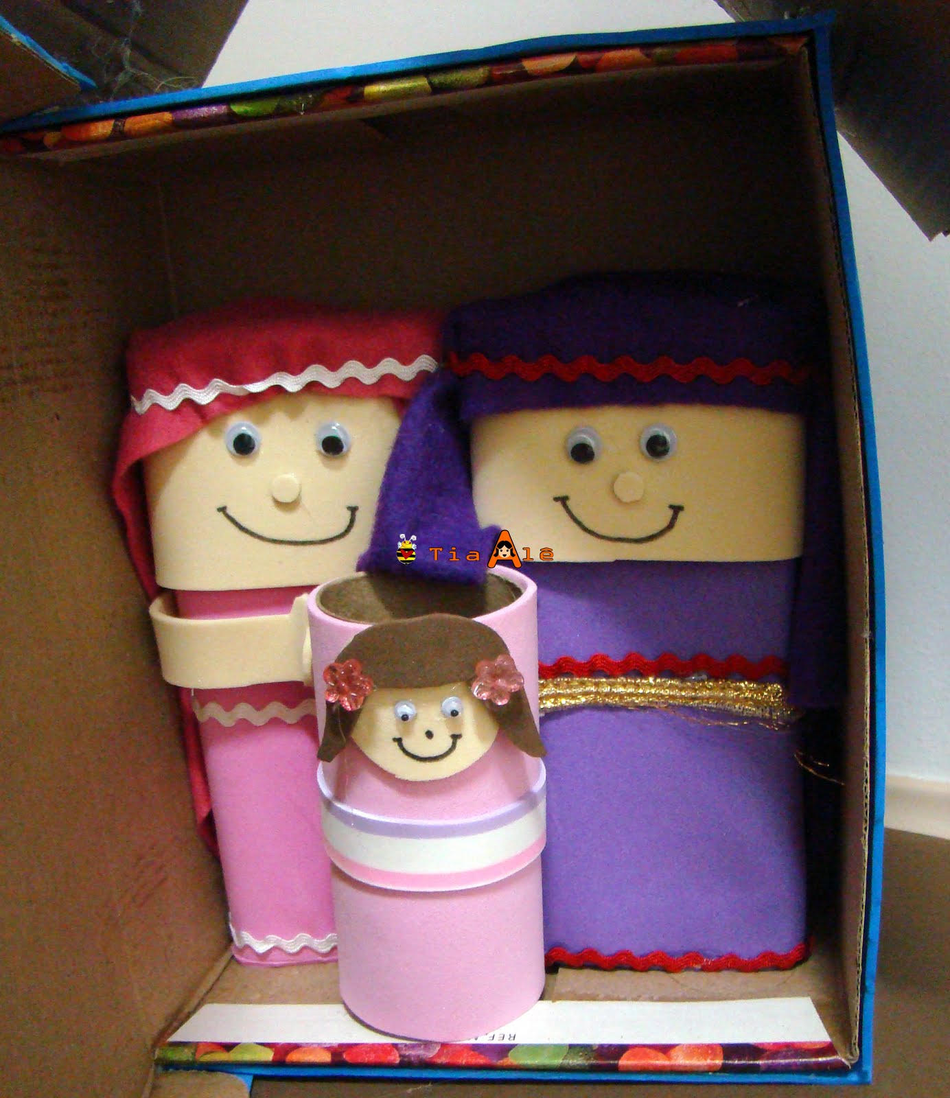 A casa aonde eles oravam por Pedro. Usei uma caixa de sapato, forrei com EVA, e dentro coloquei meus bonecos.