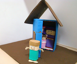 A casa aonde eles oravam por Pedro. Usei uma caixa de sapato, forrei com EVA, e dentro coloquei meus bonecos.